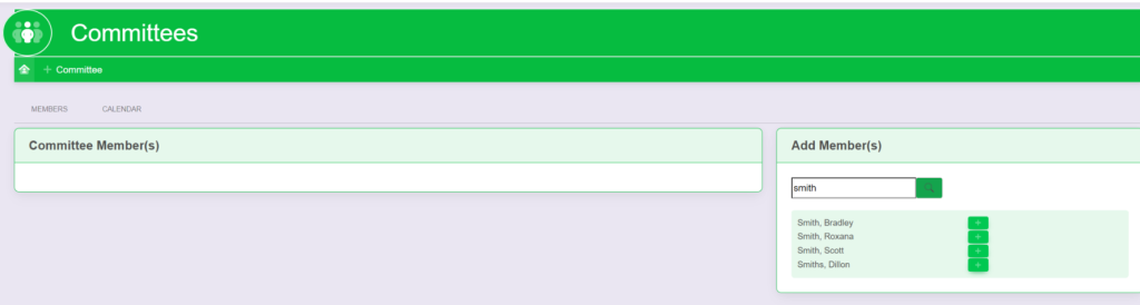 Then, select the green magnifying glass to the right of the search bar. A list of the members’ with the first/last name that you have entered will appear below the search bar that looks like this: