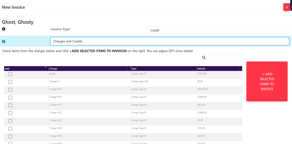 Once all applicable options have been selected, press the red +Add to Invoice button on the top right.