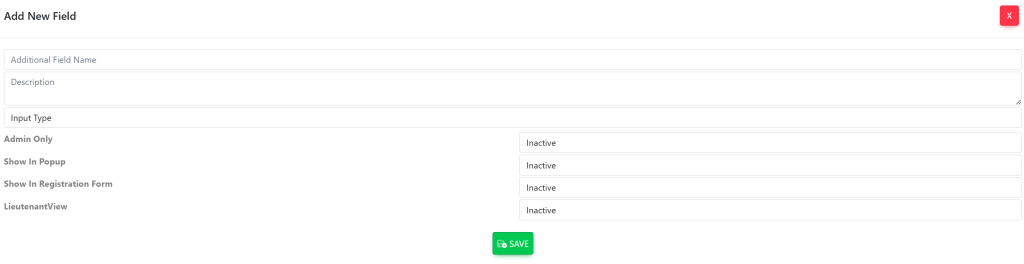 To add an additional field, click the green + Add button in the bottom right-hand corner. A pop-up window will appear that looks like this: