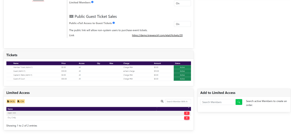 Within the Event Settings box, locate Limited Members under Member Settings.