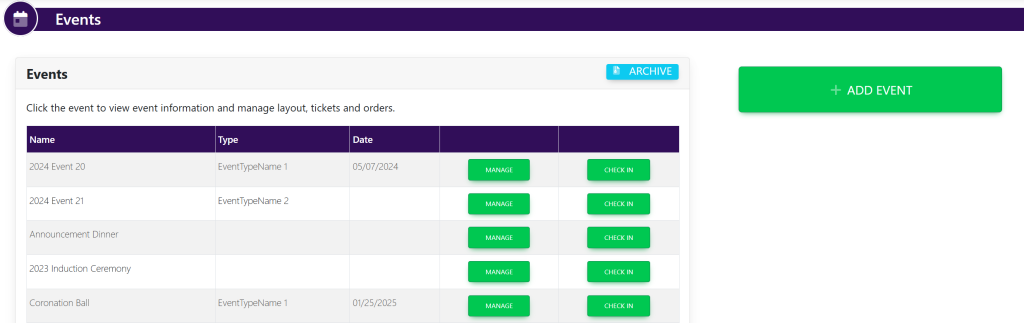 Within the left-hand side of the screen in the navigation bar under Events, select Events. This will take you here: