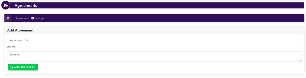 Click + AGREEMENT from the top section navigation. This will take you here: