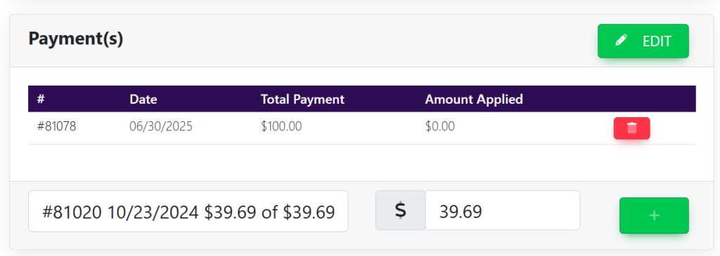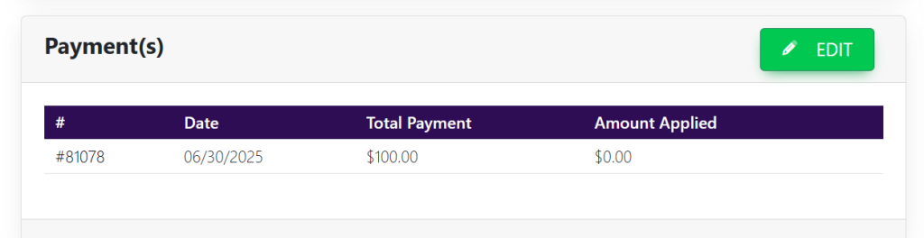 In the Payment(s) box, select the green button titled ‘Edit’. Your page will now look like this: