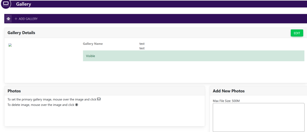 Select the gallery in which you wish to add pictures to. This will take you here: