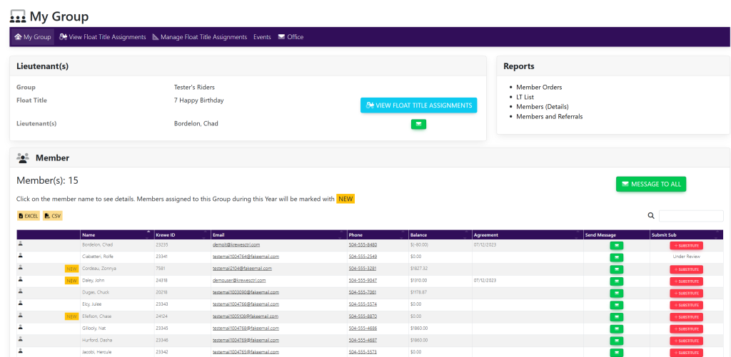 In the box titled Member, locate the row of the member that you would like to submit a substitute for.