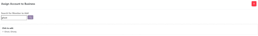 A list of members will appear. Click the name of the user to add to the Business Account. See here: