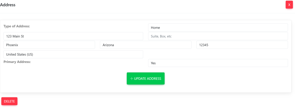 In the Address(es) box, select Edit next to the current address. A pop-up will appear that looks like this: