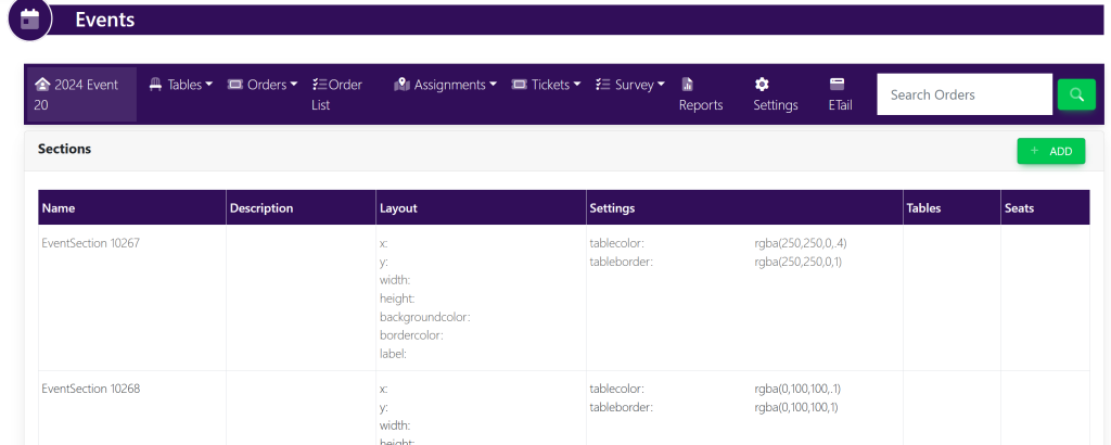 In the horizontal bar at the top, select Tables. A drop down will appear. Select Sections. This will take you here: