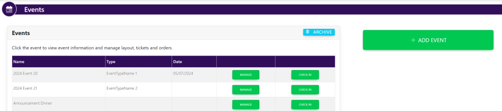 Within the left hand sidebar under EVENTS, select Events. This will take you here: