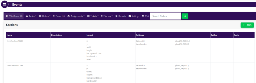In the horizontal bar at the top of the page, select Tables. A drop down will appear. Select Sections. A new tab will appear that looks like this: