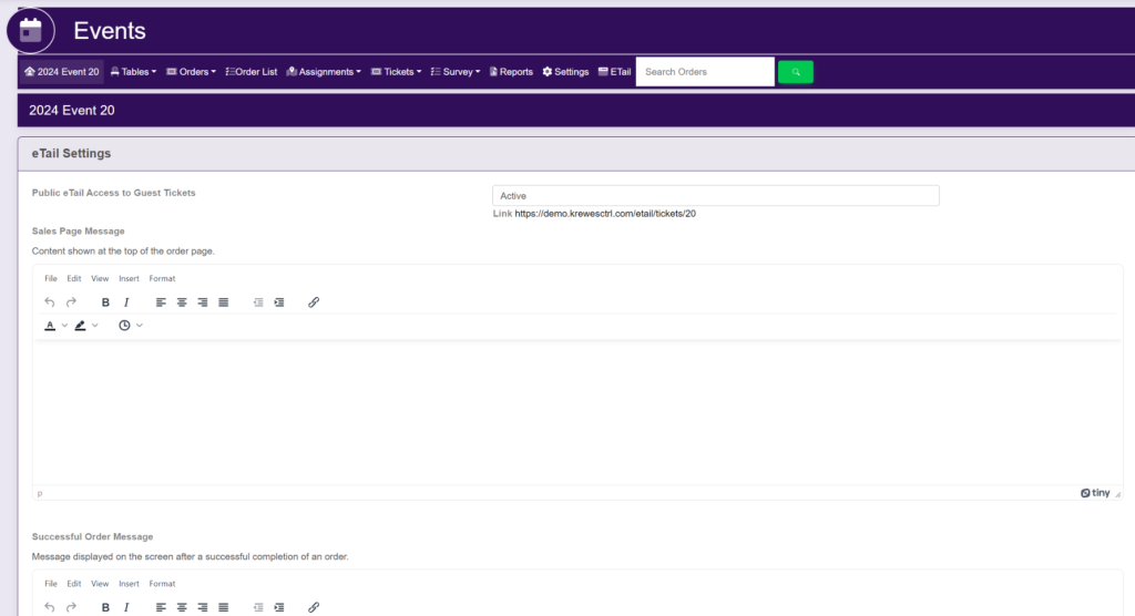 - Public ETail Access to Guest Tickets – Active/Inactive