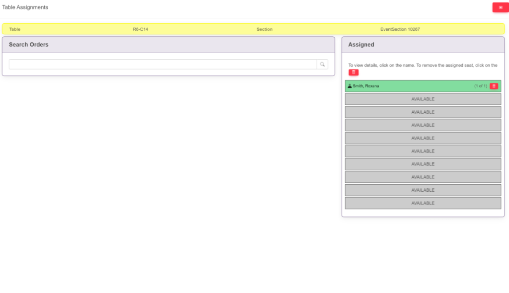 Double click on the table that you wish to delete an assignment. A pop up will appear that looks like this: