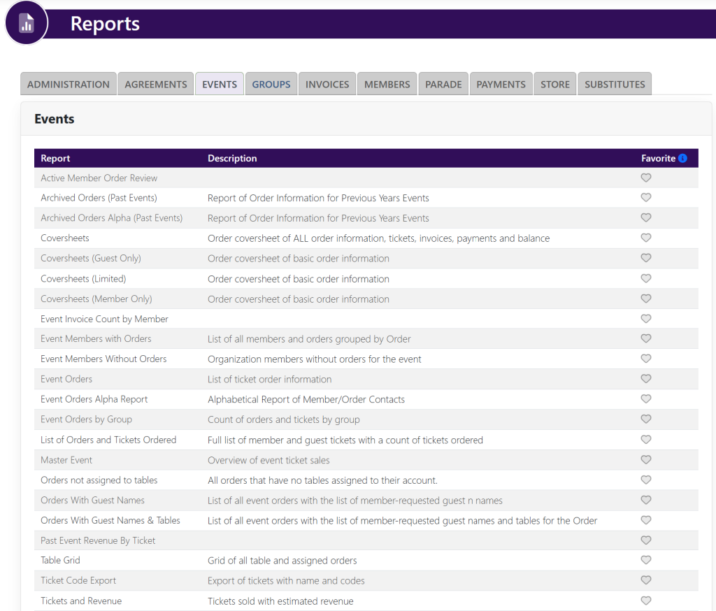 Select the event in which you wish to find reporting. This will take you here: