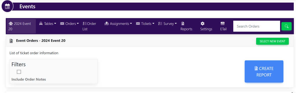 Select the report titled Event Orders. A new page will appear that looks like this:
