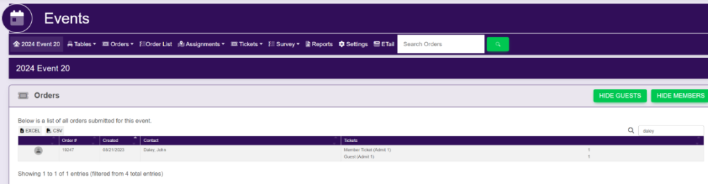 In the top right of the Orders box in the search bar, type in the members’ name in which you wish to see their orders. It will look like this: