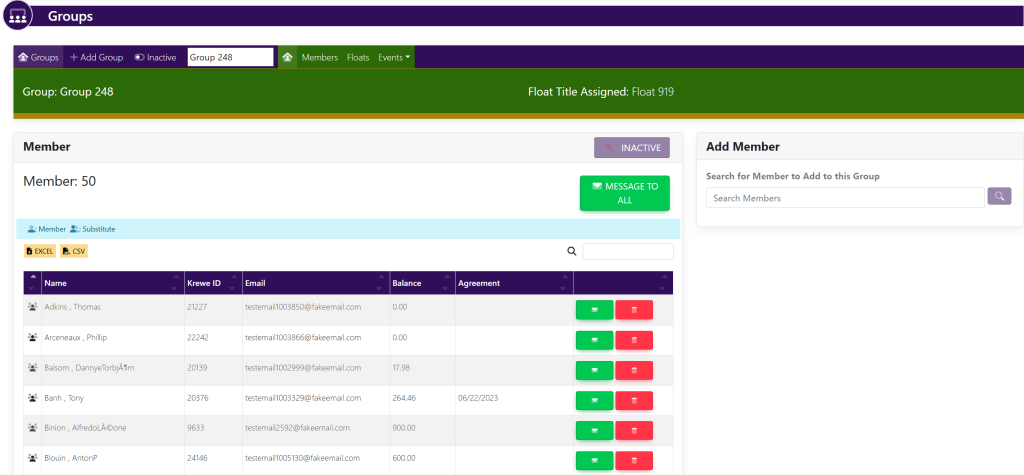 To remove a member, select the red button with a trash can icon to the right the members’ name.