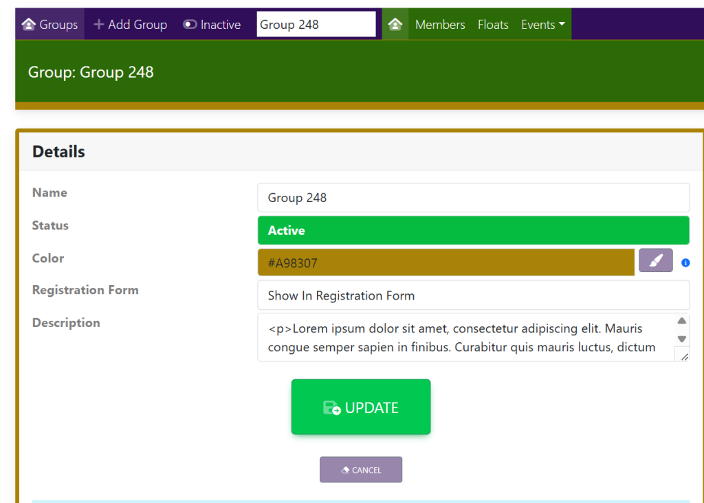 When you have finished updating the group details, select the green Update button.