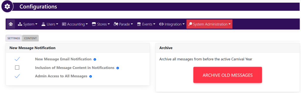 Within the horizontal navigation bar, select System. From the drop down, select Messages. This will take you here: