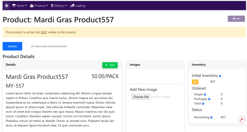 Within the Settings box, make sure the checkmark is selected next to ‘Package Products (Out of stock by sub item)’ and ‘Out of Stock products visible in store(s)’.