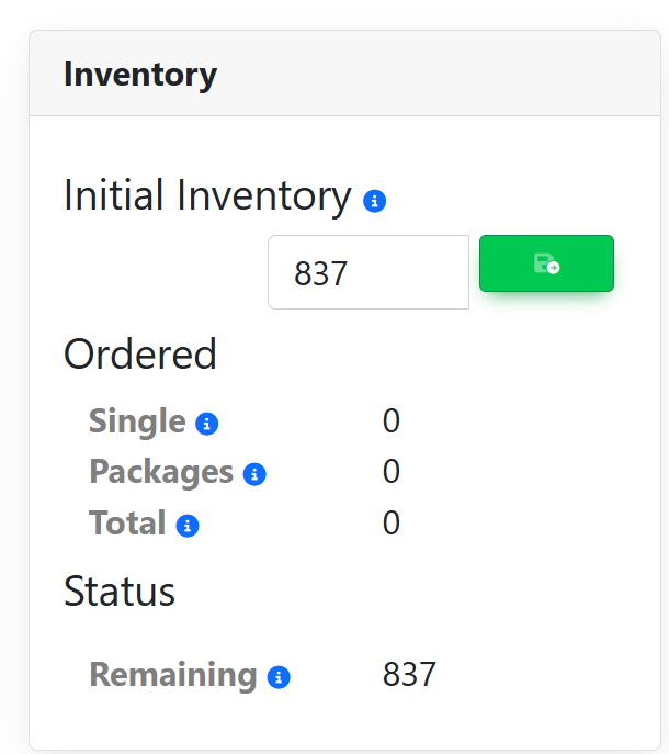 Change initial inventory to 0. Then select the green button to the right. The box will now look like this: