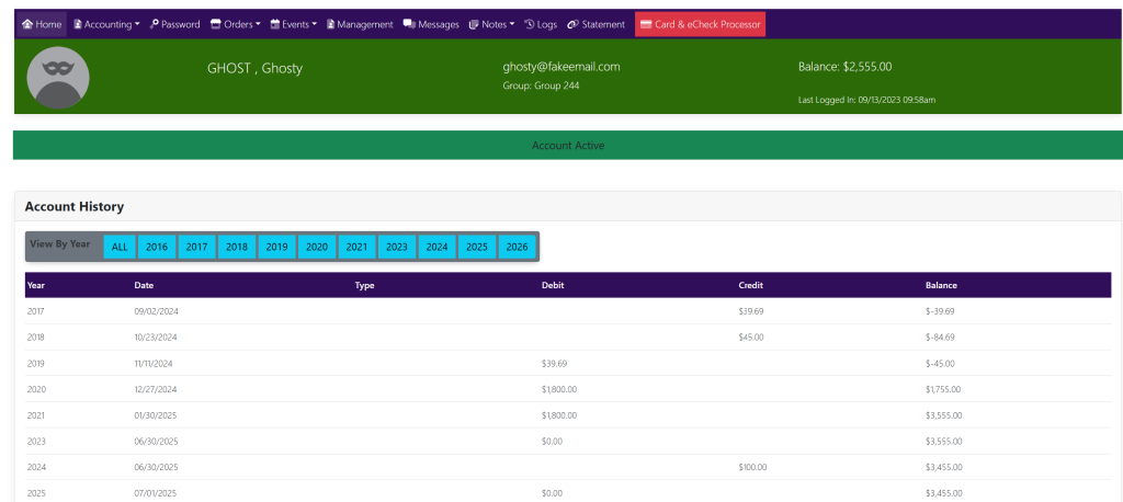 This will give you the full history of the invoices and payments within the account.