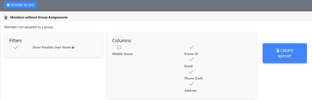 Under reports, select the report titled Members without Group Assignments. This will open a new page that looks like this: