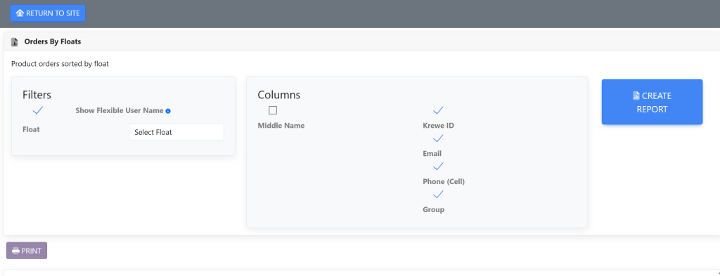 In the Reports box, select Orders By Floats. A new page will appear that looks like this: