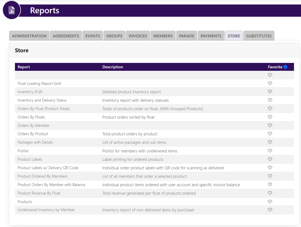 You can access this report by selecting the Reports button at the top right hand of your screen near the Settings and Configurations. A page will appear that looks like this: