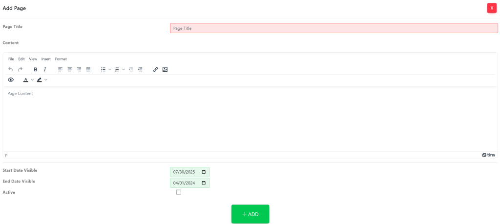 When you have finalized the details of your new page, select the green button at the bottom of the screen titled +Add.