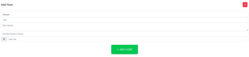 - Enter the float’s title using the text box directly underneath the chassis selection.