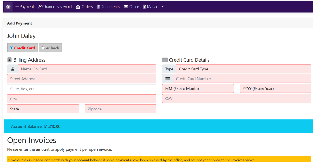 In the horizontal navigation bar, click + Payment. This will take you here: