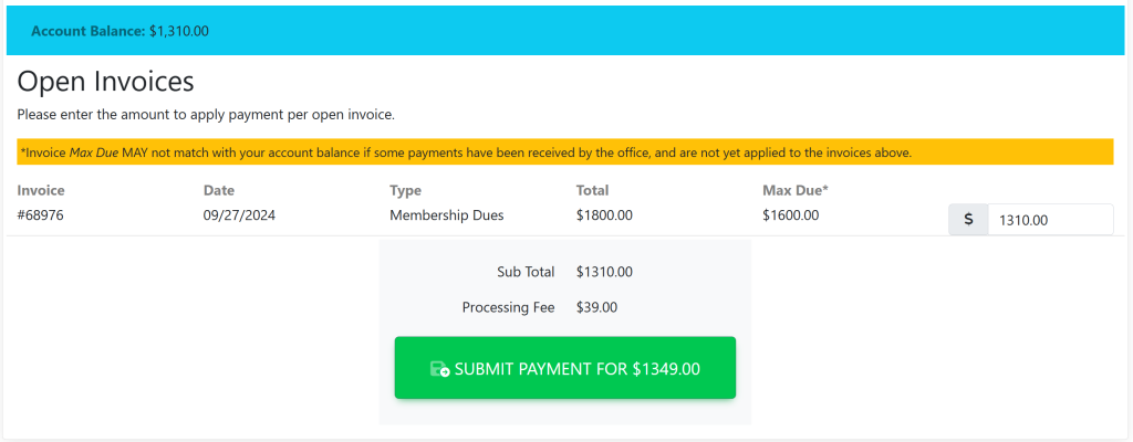 Type in the amount you are paying in the box next to the open invoice. See here: