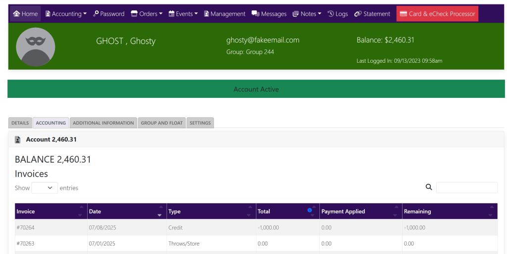 Then, select the green button titled Update. The payment will appear within the members’ account.