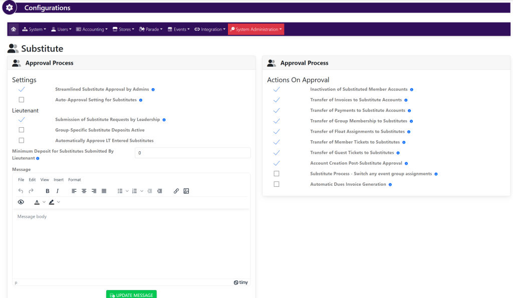 The settings under Actions on Approval set the actions that happen during upon approval of a new Substitute.