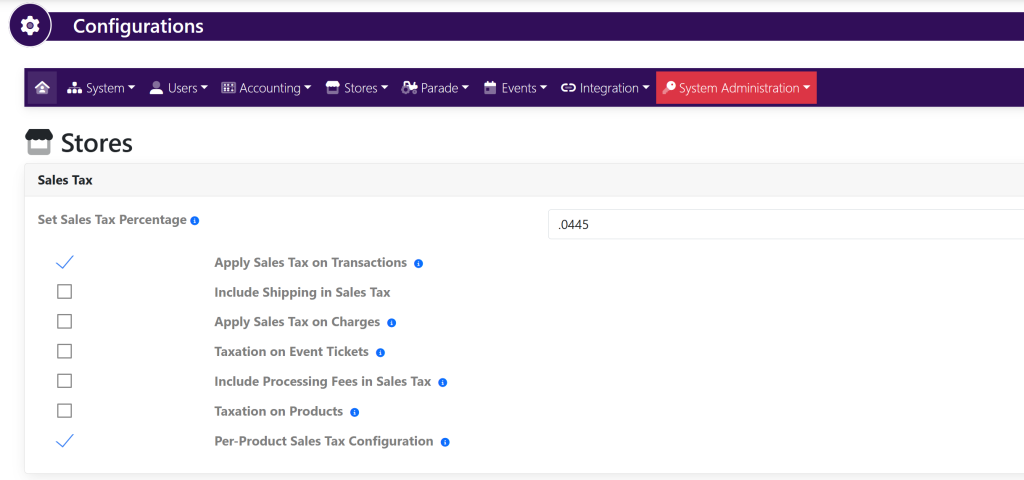 You can also utilize the other settings within the box to specify where you would like to apply sales tax within the system in other areas.