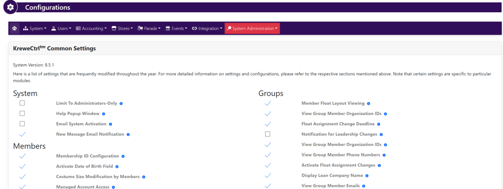 Within the KrewesCtrl Common Settings box, locate the column titled System.