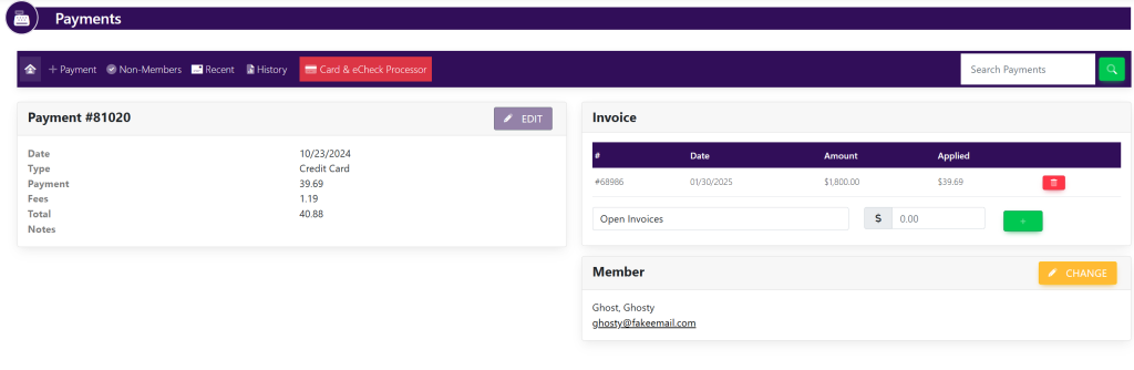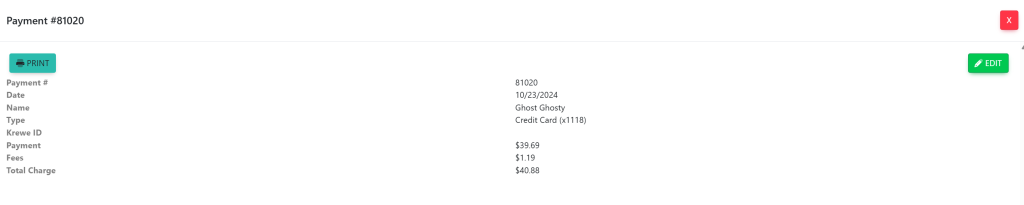 Select the payment that you wish to View or Edit. A pop up will appear that looks like this: